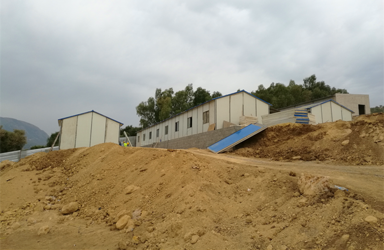 After one month of hard work, the owner抯 bill has been fitted despite of the hot weather and lack of water of electricity supplies and shortage of labor and hard terrain conditions and now, all the temporal facilities such as staff dormitory; dining rooms and kitchen; toilets and showers and concrete mixing station base and the tower crane foundation are all erected at the satisfaction of the owner and construction of the Hotel is about to start.