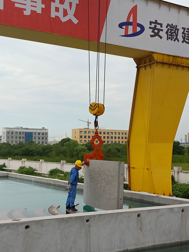 On August 20, the trial production of subway tunnel segment began. On the afternoon of August 21, the first subway tunnel segment was removed out of the mould and put into water for curing.