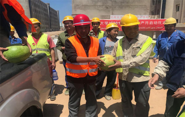 The central gobi and desert regions in southern Algeria enter into the hot summer season in June, the highest temperature there would be more than 40 degrees Celsius. In order to ensure the workers health, all project departments have organized activities named“Giving Cool and Refreshing in summer” and sent the frontline staff watermelons, green bean soup and pumpkin soup and other sunstroke prevention goods and at the same time,,,,,,,publicized and implemented the common senses of preventing heatstroke and avoid accidents that could endanger the health and safety of the workers in high temperature seasons.