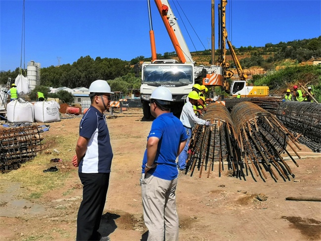In order to ensure the smooth implementation of the work, Mr. Wan Qing, the General Manager of ACEG Algerian Branch, was at the construction site inspecting the piling progress and put forward requirements on the site materials, equipments and logistics support works. He asked the Project to accelerate the construction progresses to ensure the completion of the bored piles on time with safety and quality.