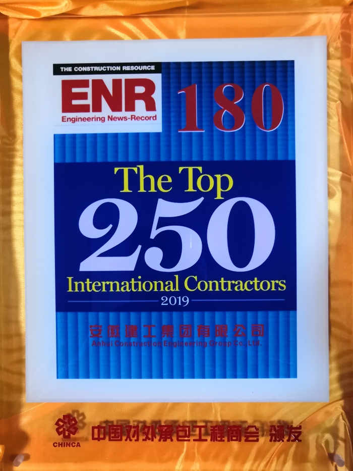 The International Engineering Management Forum hosted by China International Contactors Association was held in Beijing on September 5 and closed on September 6, during which time the awarding ceremony for ENR`s 2019 Top 250 International Contractors has taken place and Anhui Construction Engineering Group ranked 180th, up 12 places from that of 2018, and ranked 51st among 75 Chinese enterprises listed.