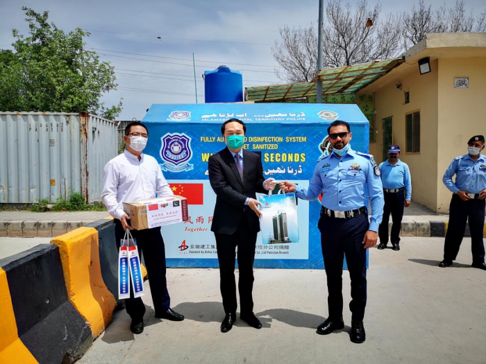 On May 1, Mr. Hu Haitao, General Manager of ACEG Pakistani Branch, visited the Police Station in the Legation Quarters in Islamabad City and donated to the Police Station on behalf of the Branch Company, some epidemic prevention materials such as automatic spraying sterilizers, hand sanitizers and surgical facial masks.